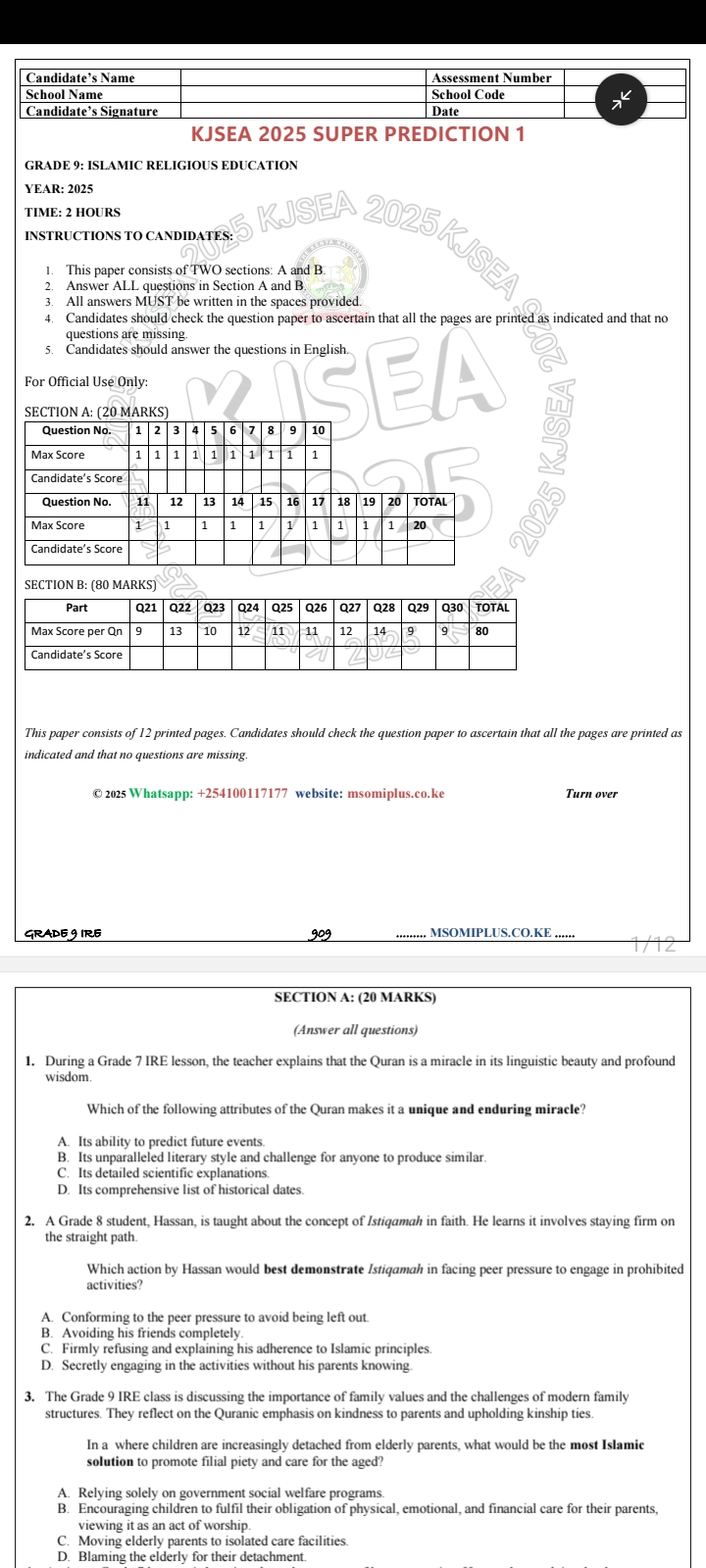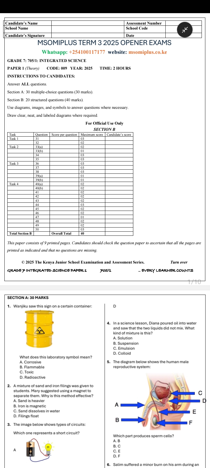 Download full set exams for Compass js2509 grade 9 2025 exams with marking schemes