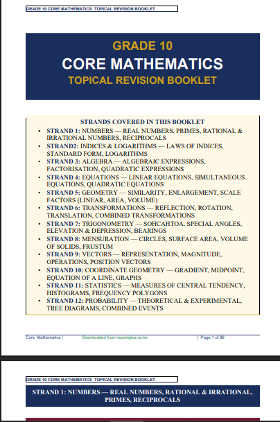 Best topical revision booklet for grade 10 core mathematics with answers for all strands