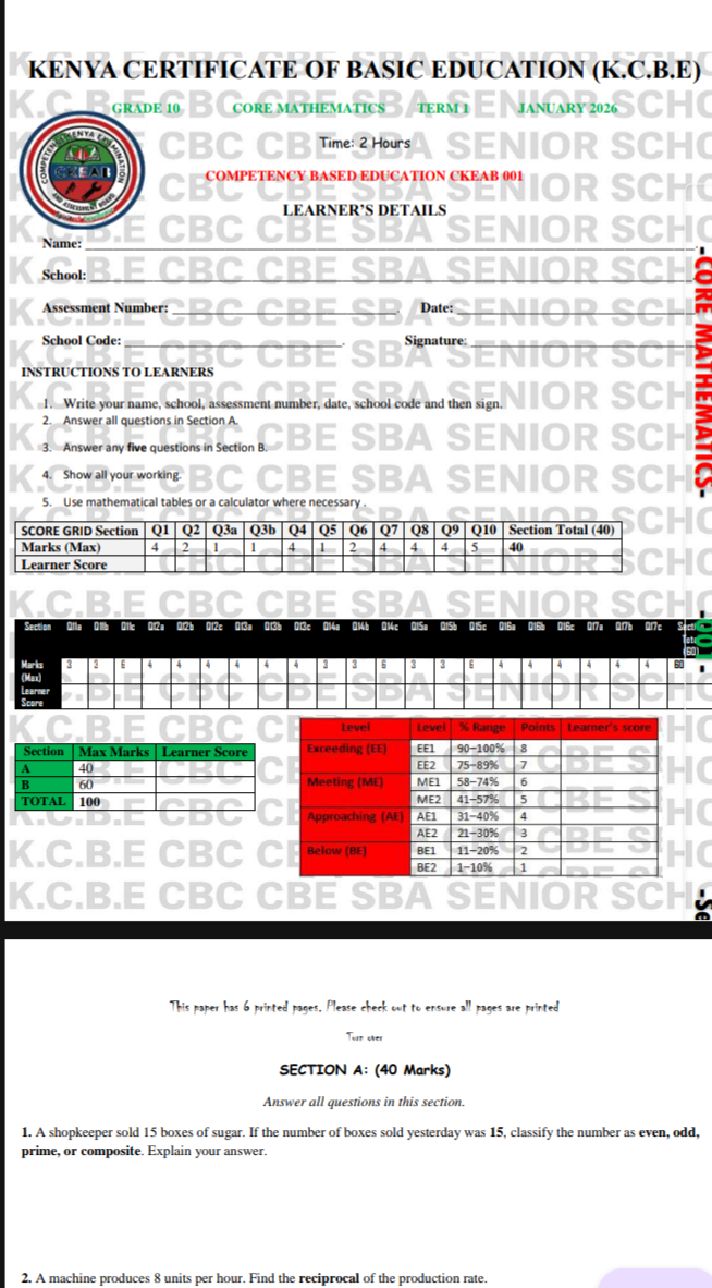 Complete senior school grade 10 Computer Science exams with marking schemes for term 1 opener and mid term 2026. Both Pdf and word format available