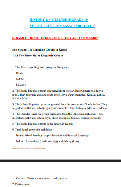 Best topical revision booklet for grade 10 History and citizenship with answers for all strands