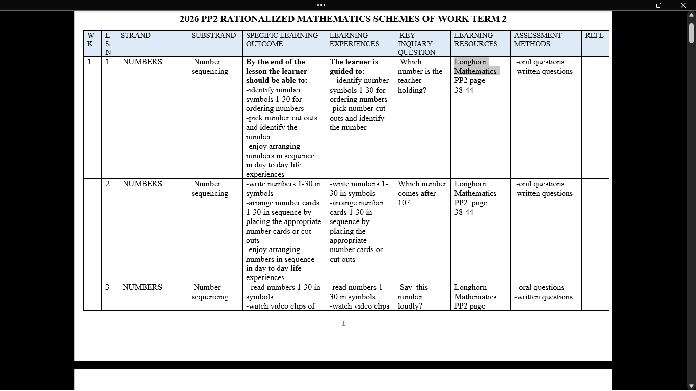 PP2 TERM 2 MATHEMATICS SCHEMES OF WORK 2026