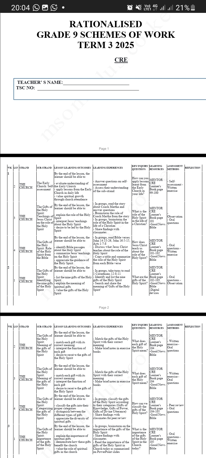 Pre tech Rationalised grade 9 term 3 schemes of work. document is in word docx (editable format). you can edit and customize. schemed for 9 weeks, and week 9 for end term assessment