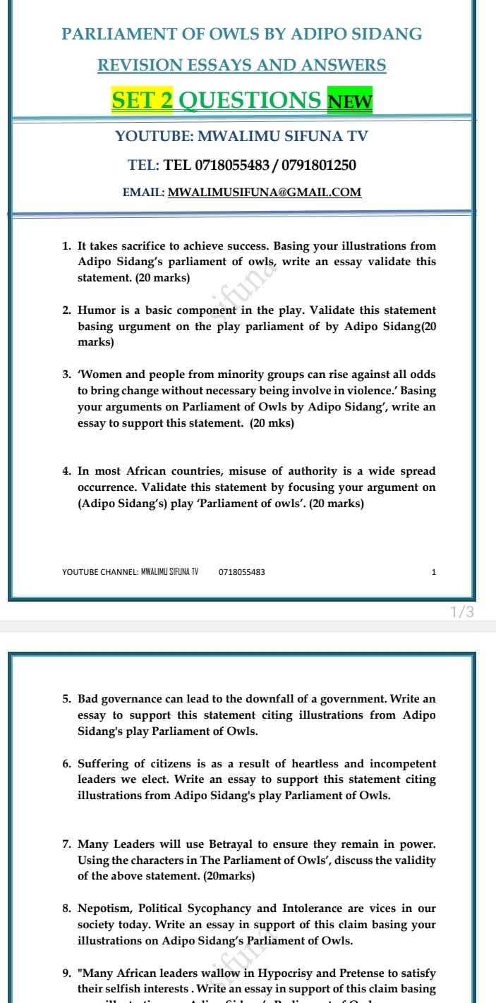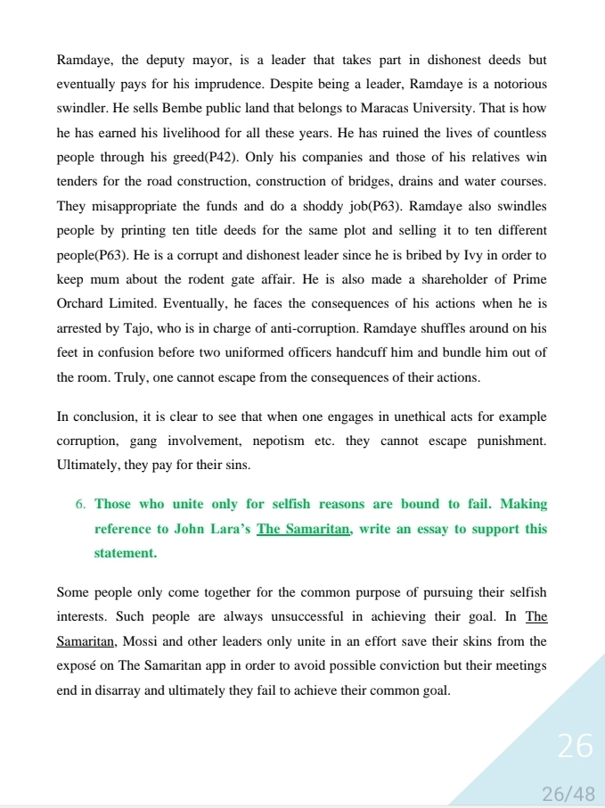 KCSE essays questions and answers for The Samaritan. 10 essays. 48 pages